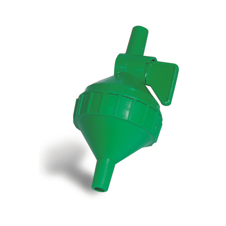 Gaun filter sa slavinom (šifra 25502) je mali filter s integriranom slavinom dizajniran za sustave hranjenja kroz cijevi. Služi kao filter za cijevi s unutarnjim promjerom od 9 mm - obično se koristi u sustavima za navodnjavanje niskog tlaka za perad, kuniće i druge male životinje . Uključuje slavinu koja vam omogućuje isključivanje ili zaustavljanje dovoda vode bez potrebe za uklanjanjem filtera iz cijevi.