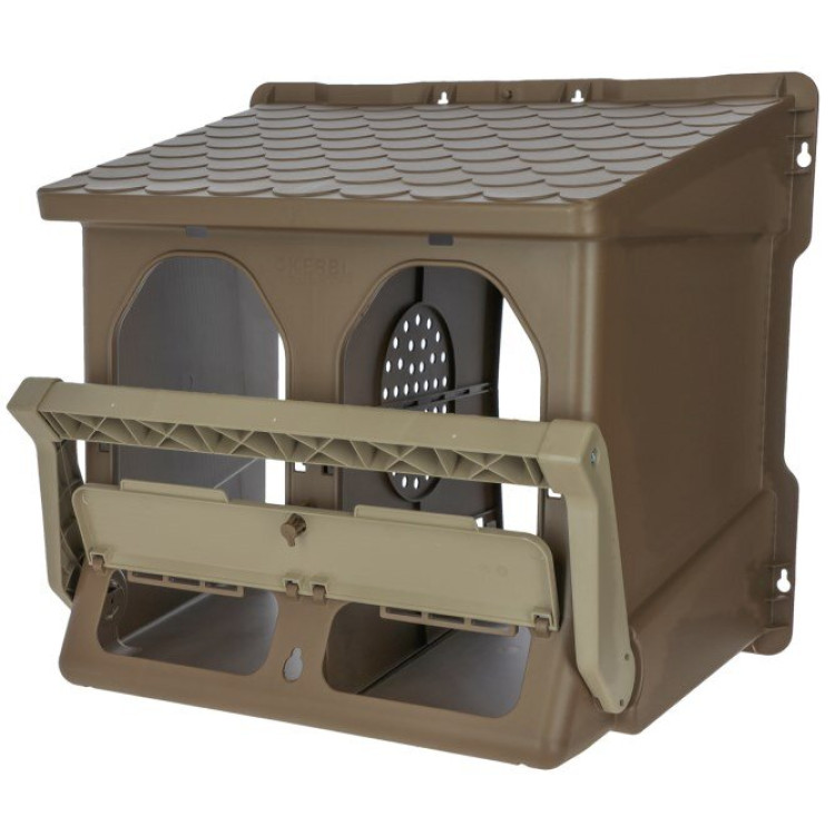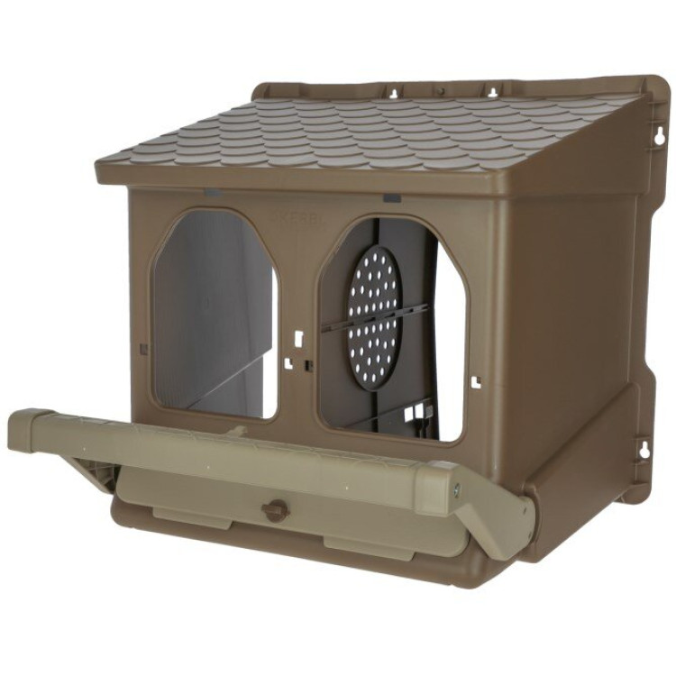 Gnijezdo je izrađeno od plastike u smeđoj boji i izvedeno je bez stražnje stijenke. Može se i objesiti, pa mjesto za nesenje lako postavite na odgovarajuću visinu i lakše održite prostor oko gnijezda čistim, čak i kod teže peradi.