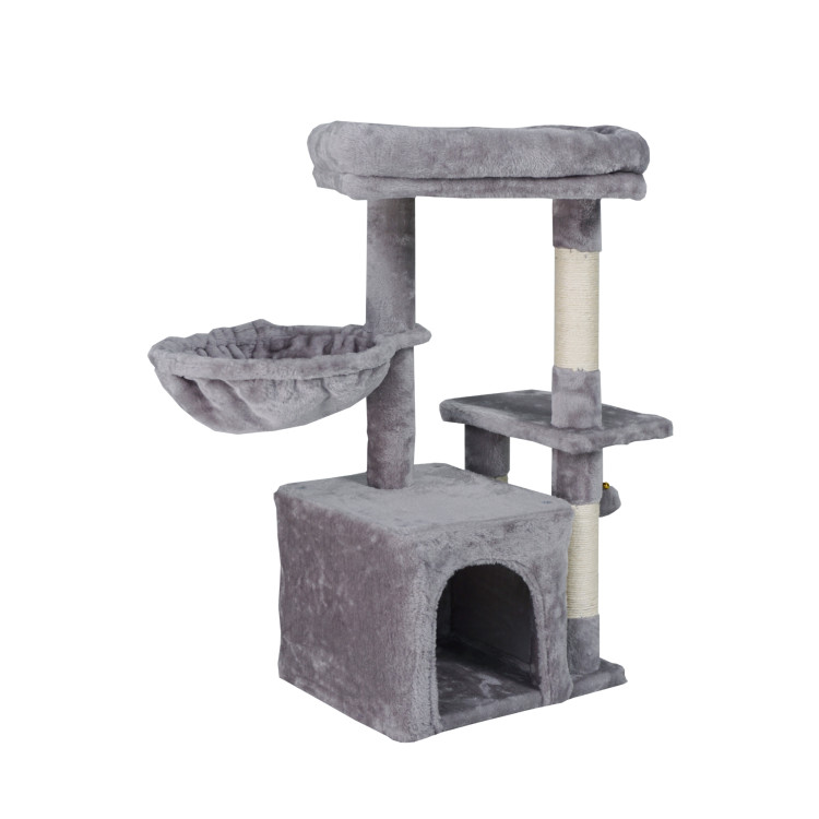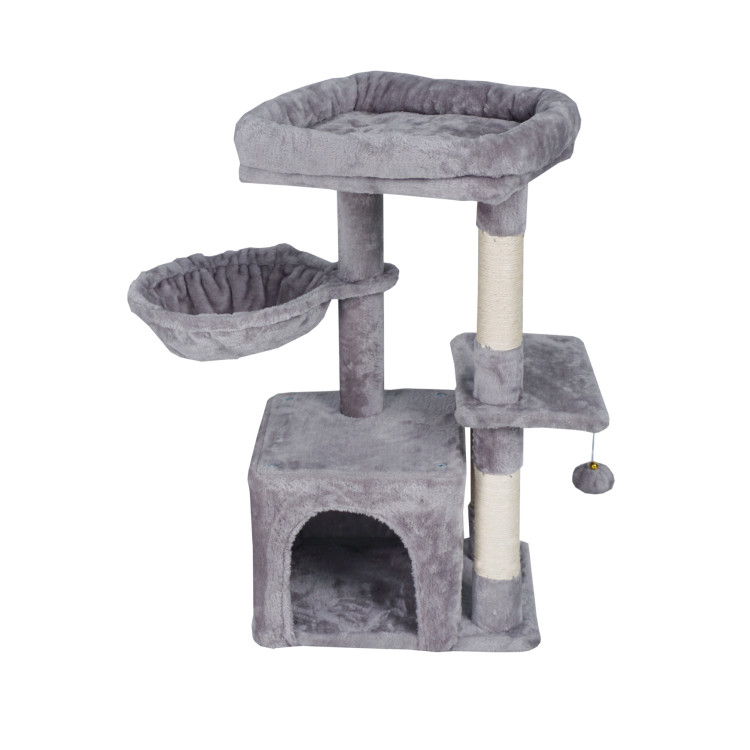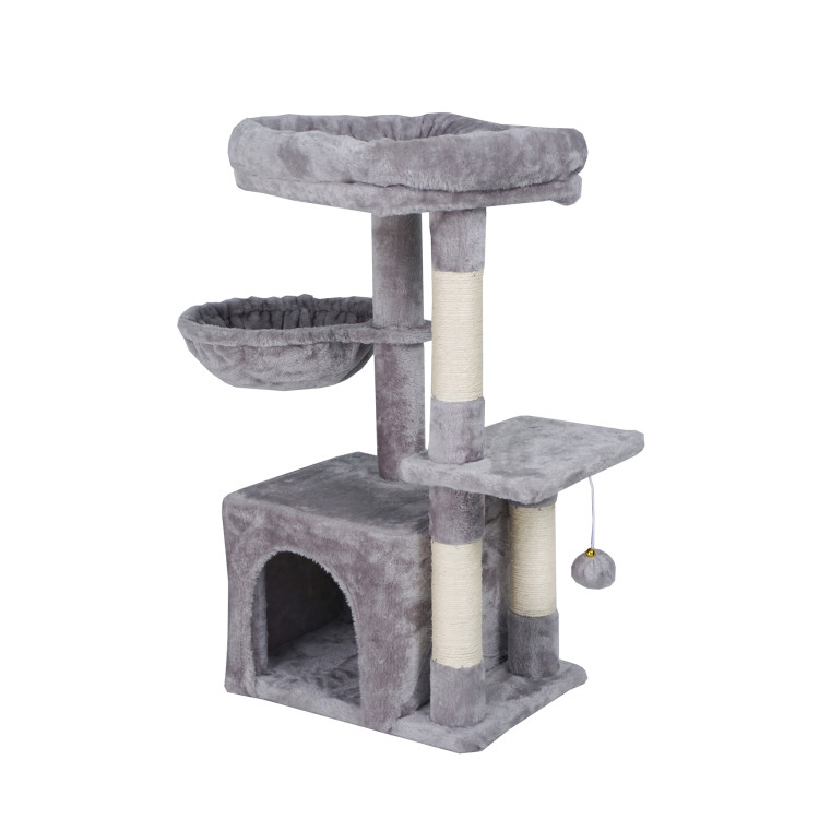 - Sadržaji za vaše kućne ljubimce : Grebalica pruža nekoliko mjesta za odmor - punopravnu kućicu, viseću mrežu i nekoliko podignutih platformi.
