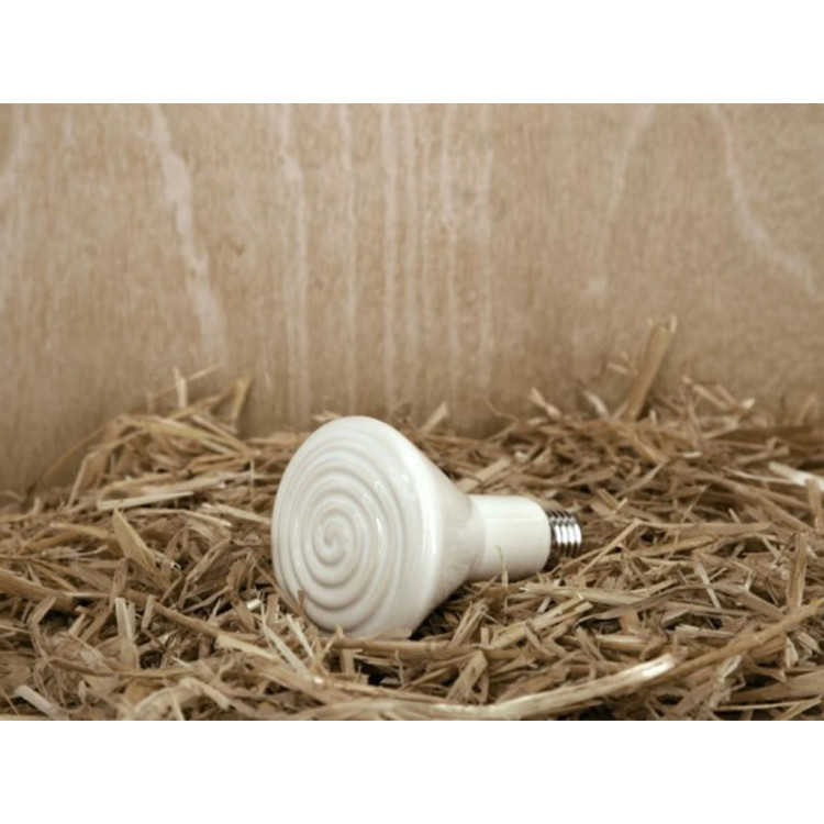 Keramička žarulja je poseban grijaći element koji emitira samo toplinu, a ne svjetlost . Zbog toga je idealna za uzgoj pilića nakon izleganja, za upotrebu u inkubatorima, inkubatorima ili kao dodatno grijanje za kokošinjac tijekom hladnih mjeseci.