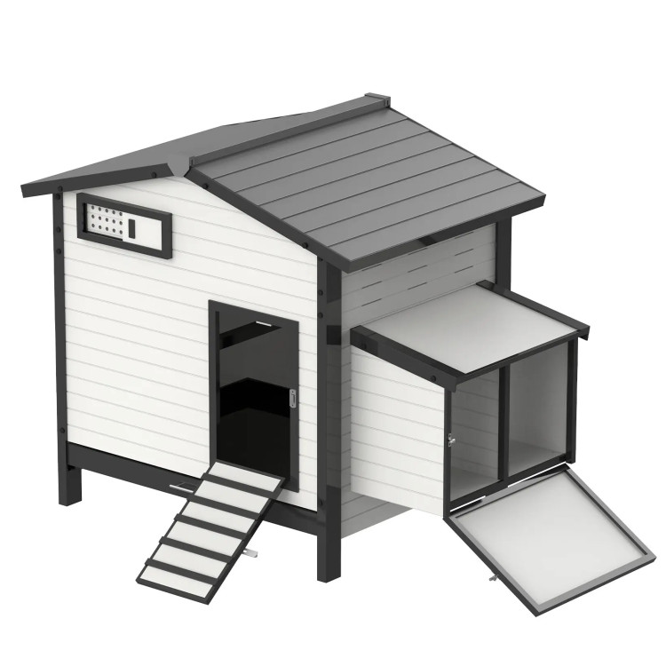 Struktura uključuje podesivu ventilaciju za poticanje cirkulacije zraka i poboljšanje dobrobiti životinja. Kokošinjac je dizajniran da pruži siguran i udoban prostor za kokoši, a istovremeno ostane praktičan za poljoprivrednika tijekom svakodnevnih operacija.