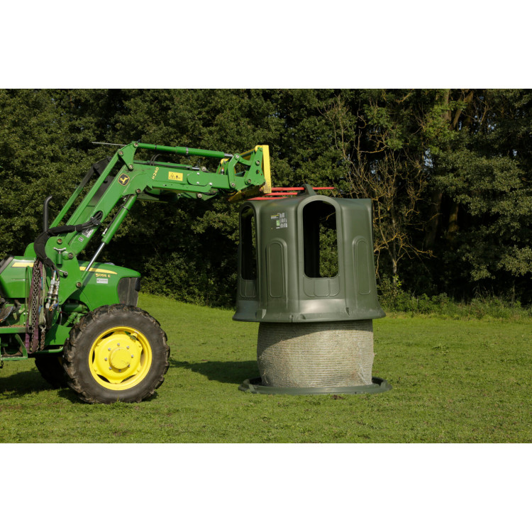Integrirana ušica služe za učvršćivanje u tlo. Opcionalno dno (prodaje se zasebno) pomaže pri suhom skladištenju bale i može se zaključati za prijevoz sijena.