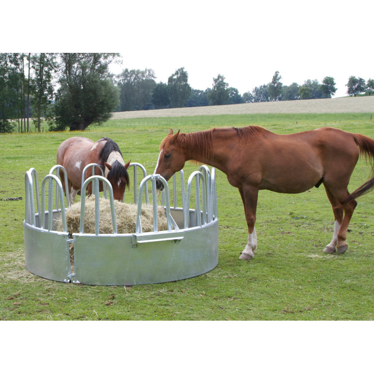 Kružno hranilište za goveda i konje promjera 2,3 m namijenjeno je hranjenju sijenom iz standardnih bala, uključujući i okrugle. Ima 12 hranidbenih mjesta i palisadnu hranidbenu ogradu, kako bi životinje pristupale hrani izvana po cijelom obodu. Isporučuje se kao set u 3 dijela, vruće je pocinčano, a zahvaljujući trotočkovnom prihvatu lako ga premještate traktorom.