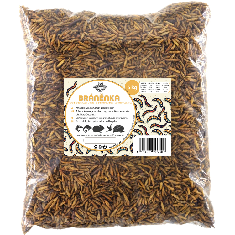 Ličinke su prirodna hrana za veliku skupinu životinja. Osušene ličinke 100% prirodna su dopunska hrana za ptice, ribe, gmazove i male sisavce kao što su ježevi, miševi ili štakori. To je prikladna i pristupačnija alternativa crvu brašnaru.