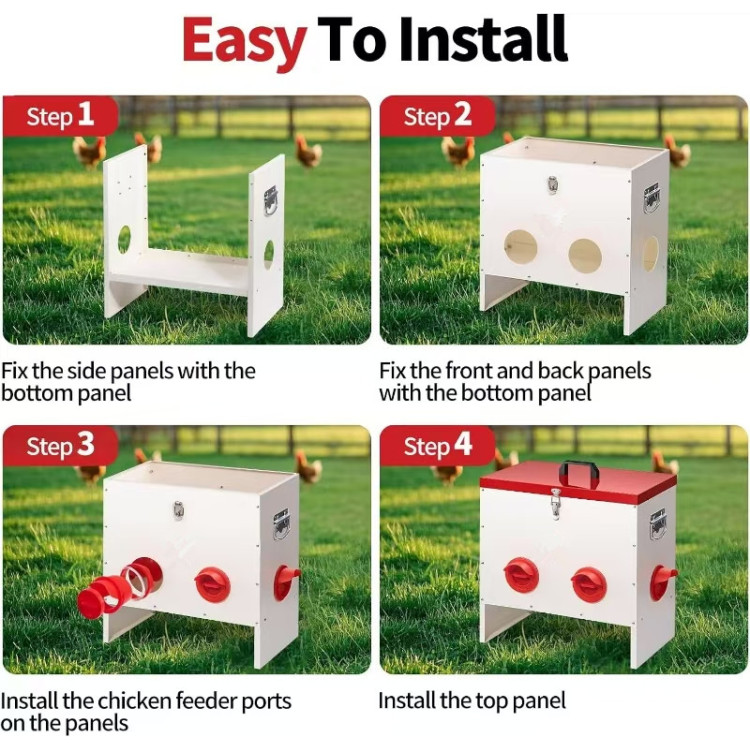 Sa 6 otvora za hranjenje, kokoši imaju dovoljno prostora za hranjenje u isto vrijeme. To pomaže u smanjenju agresije i osigurava ravnomjeran pristup hrani za slabije jedinke.