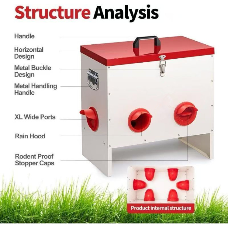 Pokriveni dizajn štiti hranu od kiše, vlage i prljavštine, a istovremeno ograničava pristup štetočinama poput glodavaca ili divljih ptica.