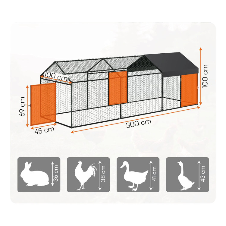 S duljinom od 300 cm i visinom do 100 cm, ograđeni prostor nudi dovoljno prostora za prirodno kretanje životinja bez zauzimanja previše prostora u vrtu. Idealan je za male i srednje farme.