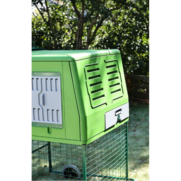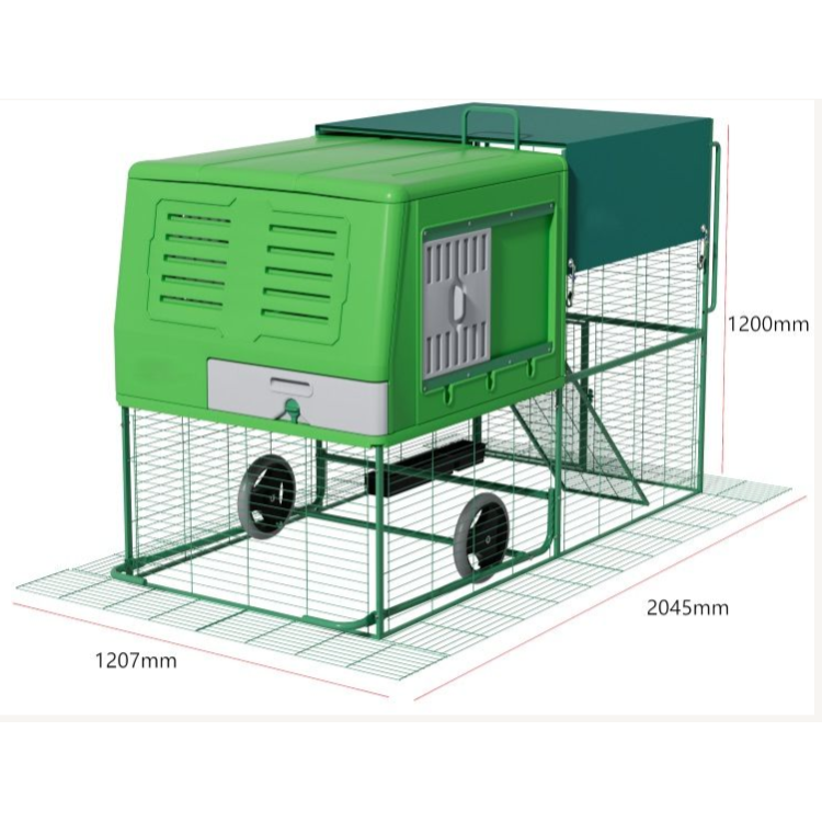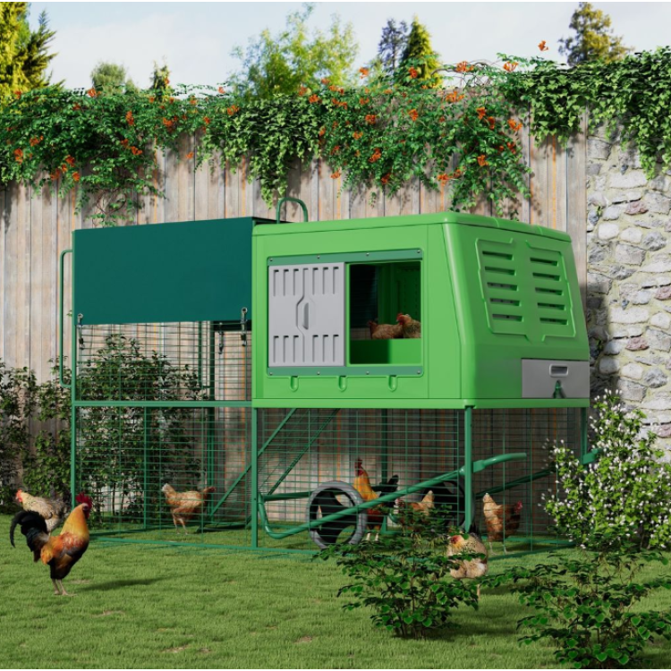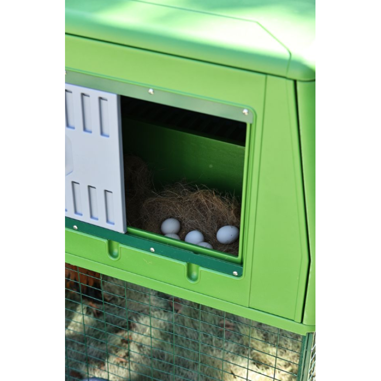 EGG CHALET kombinira zatvoreni prostor za odmaranje i nošenje kokoši s pripadajućim ograđenim prostorom , pružajući kokošima sigurno utočište i prostor za dnevne aktivnosti.