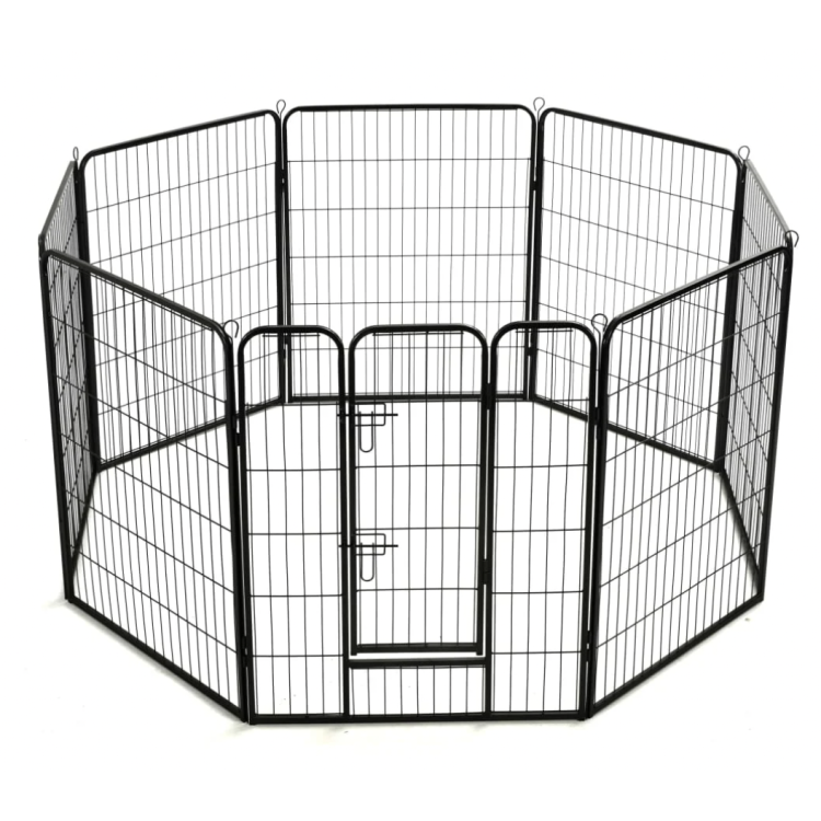 Visokokvalitetni metalni ograđeni prostor za pse i druge životinje . Ima širok raspon upotrebe u zatvorenom i na otvorenom prostoru. Može se oblikovati po želji. Ako kupujete paket više puta, možete stvoriti zaista veliki ograđeni prostor. Elementi se jednostavno međusobno spajaju šipkom odozgo kroz spojeve. U vanjskom prostoru, ove šipke se također mogu zabiti u zemlju, a ograđeni prostor se može usidriti i učvrstiti u zemlji.