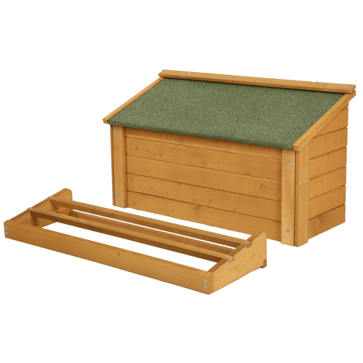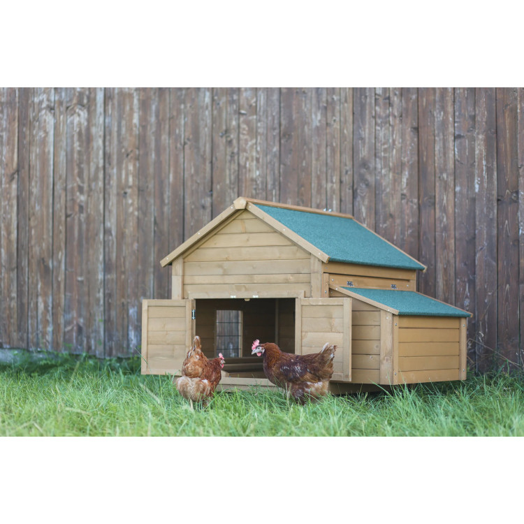 Kokošinjac s prečkama za kokoši. Može se spojiti na kućicu za zečeve i kokoši . Krov ovog kokošinjca je na šarkama i ima pokrov.