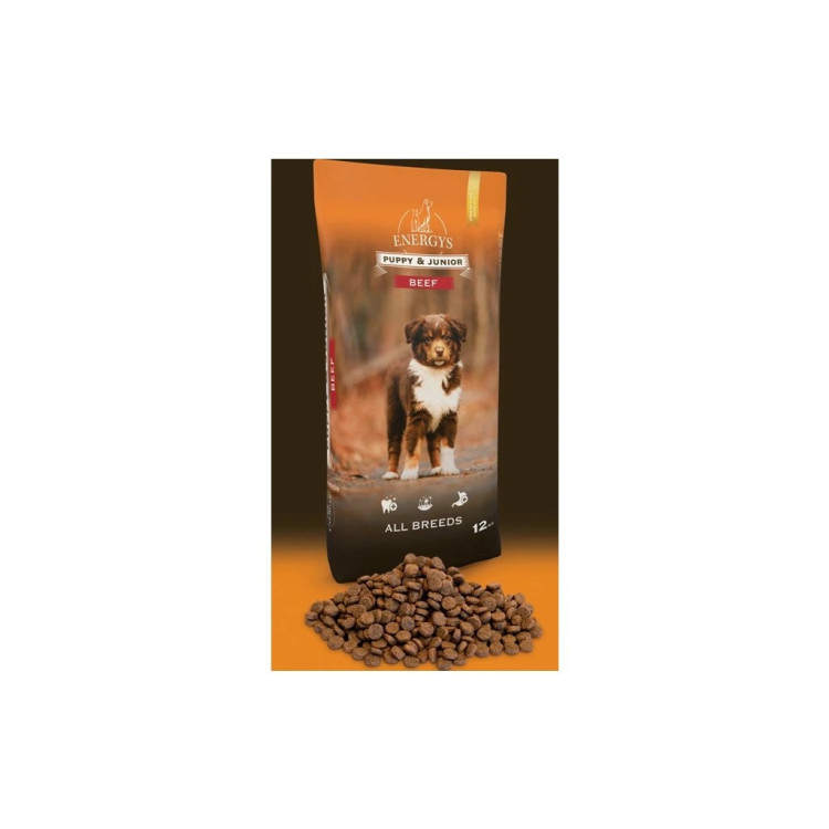 Vrhunska potpuna hrana bogata govedinom, namijenjena štencima i mladim psima svih pasmina . Sadrži 32% mesa (govedina i svinjetina) i 79% životinjskih proteina , što osigurava zdrav rast, jake kosti, pravilnu probavu i sjajnu dlaku. DOG PUPPY & JUNIOR BEEF pruža vašem psu najbolji početak u životu - uravnotežena, ukusna i s kvalitetnim sastojcima . Veličina granula: 10 mm.