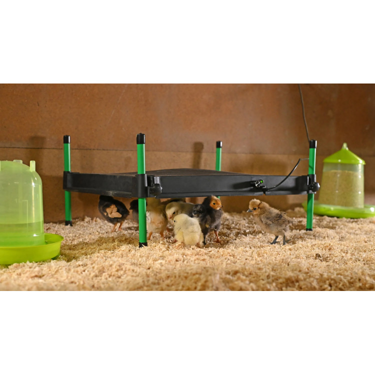 Stabilan izvor topline za prve tjedne života pilića: ploča održava temperaturu u prostoru gnijezda, lakše kontrolirate uvjete i smanjujete rizik od pothlađivanja.