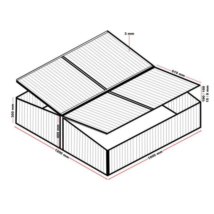 Glavna prednost ovog staklenika su četiri krovna poklopca koja se mogu zaključati i lako otvoriti, pričvrstiti i zatvoriti pomoću pričvrsnih šipki. Ova fleksibilnost omogućuje jednostavno prozračivanje staklenika i jednostavan pristup kako bi briga o biljkama bila što praktičnija.